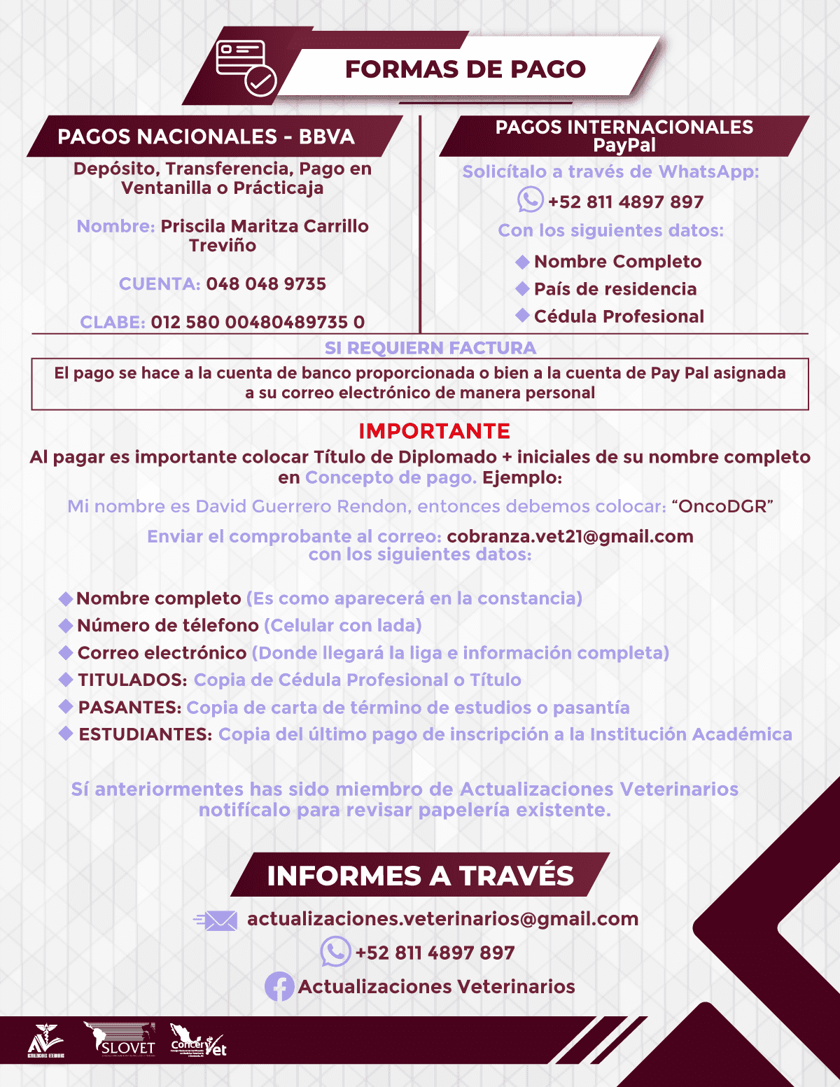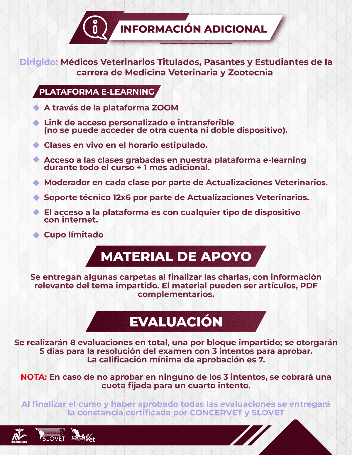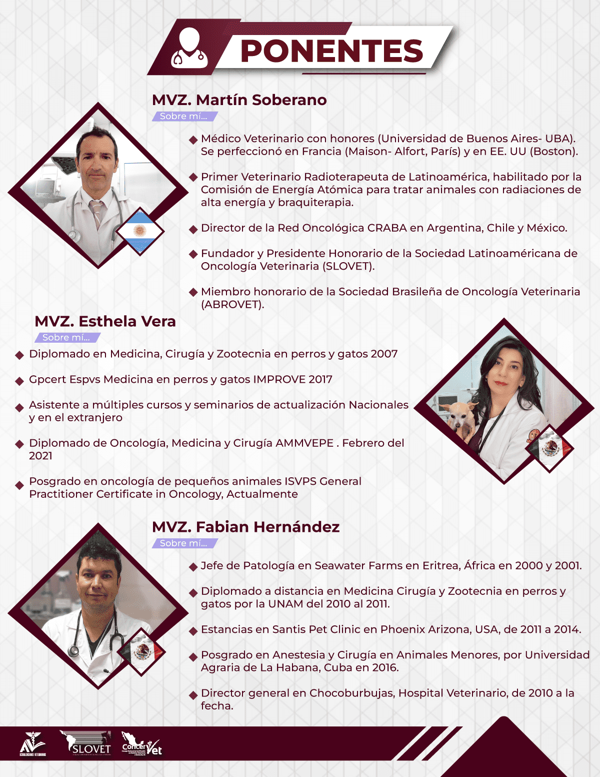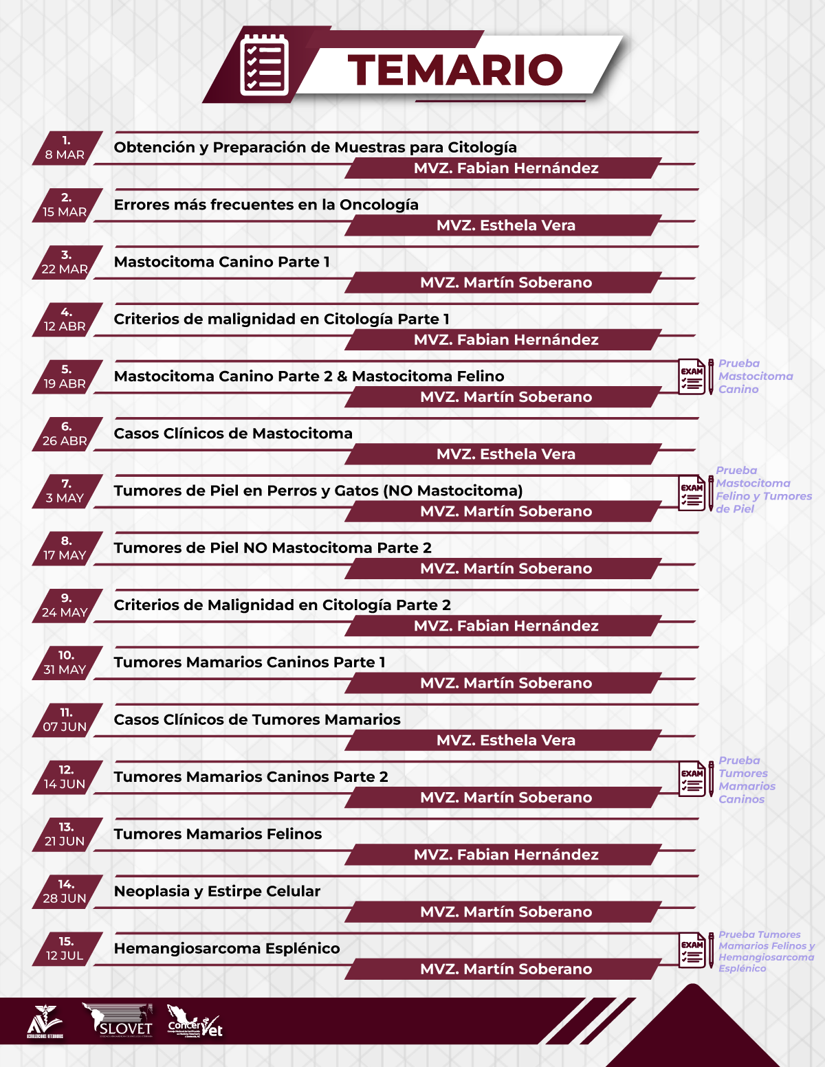 • Que el MVZ. Pueda hacer un correcto diagnóstico, identificación y sobre todo esquema de tratamiento y prevención sobre diversas patologías Oncológicas que se desarrollan en la clínica diaria de pequeñas especies